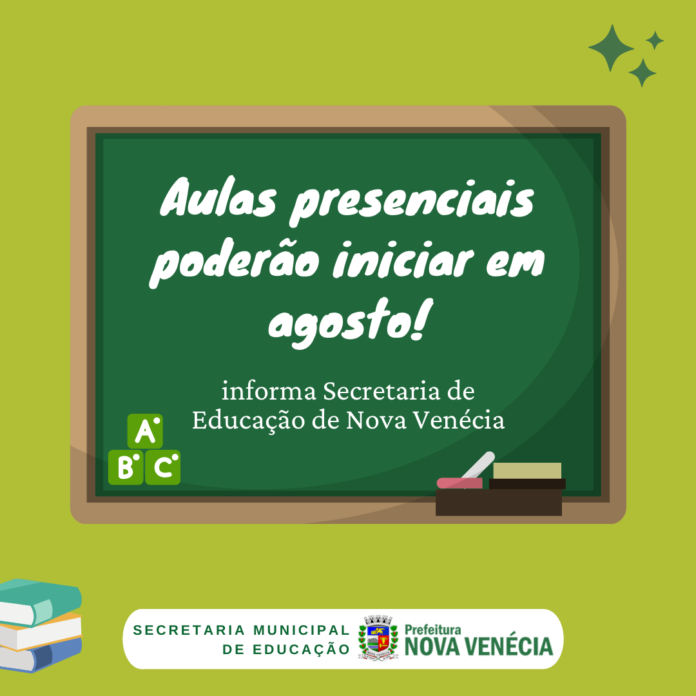 A Prefeitura de Nova Venécia por meio da Secretaria Municipal de Educação divulgou uma nota nesta quarta-feira (30), sobre o retorno presencial das aulas na rede municipal de ensino a partir do mês de agosto, a depender da classificação do Mapa de Risco. A medida vem em atendimento a notificação recomendatória da Secretaria Municipal de Saúde com o apoio do Conselho Municipal de Educação e da Comissão de Gestão Pró Educação e Saúde.