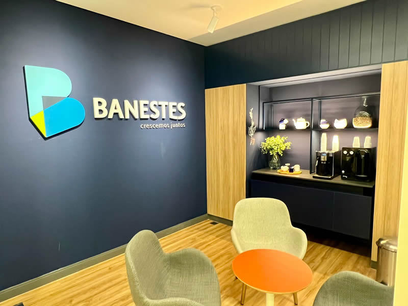 A unidade foi desenvolvida seguindo o novo padrão do banco, com ambiente projetado de forma mais moderna, conectada, funcional, espaçosa e acolhedora.(Imagem: Divulgação/Assessoria de Comunicação do Banestes)