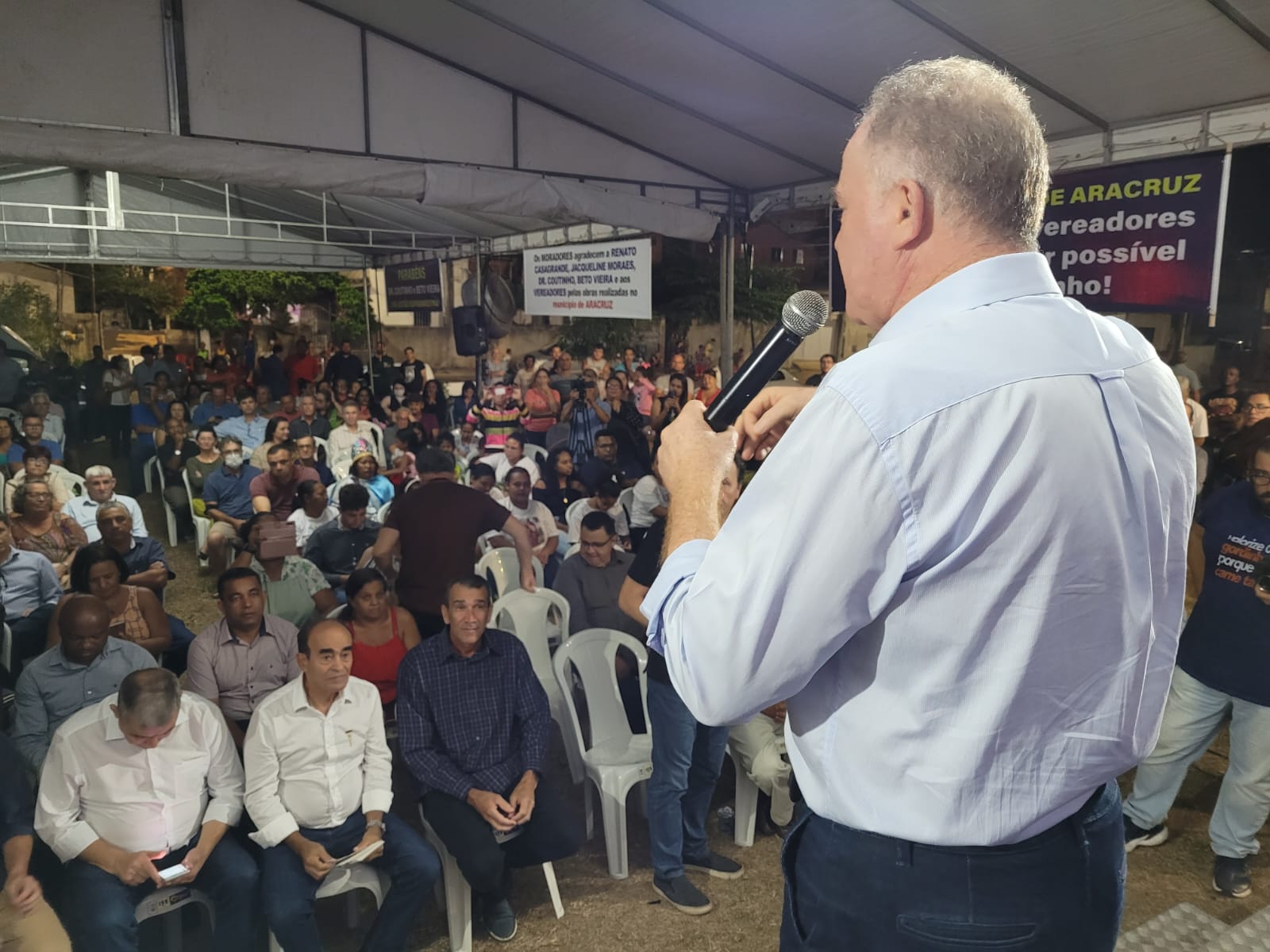 É uma alegria poder estar realizando o sonho da população de Aracruz. Essa obra de macrodrenagem é um direito do morador de Aracruz.(Imagem: Rodrigo Araujo)