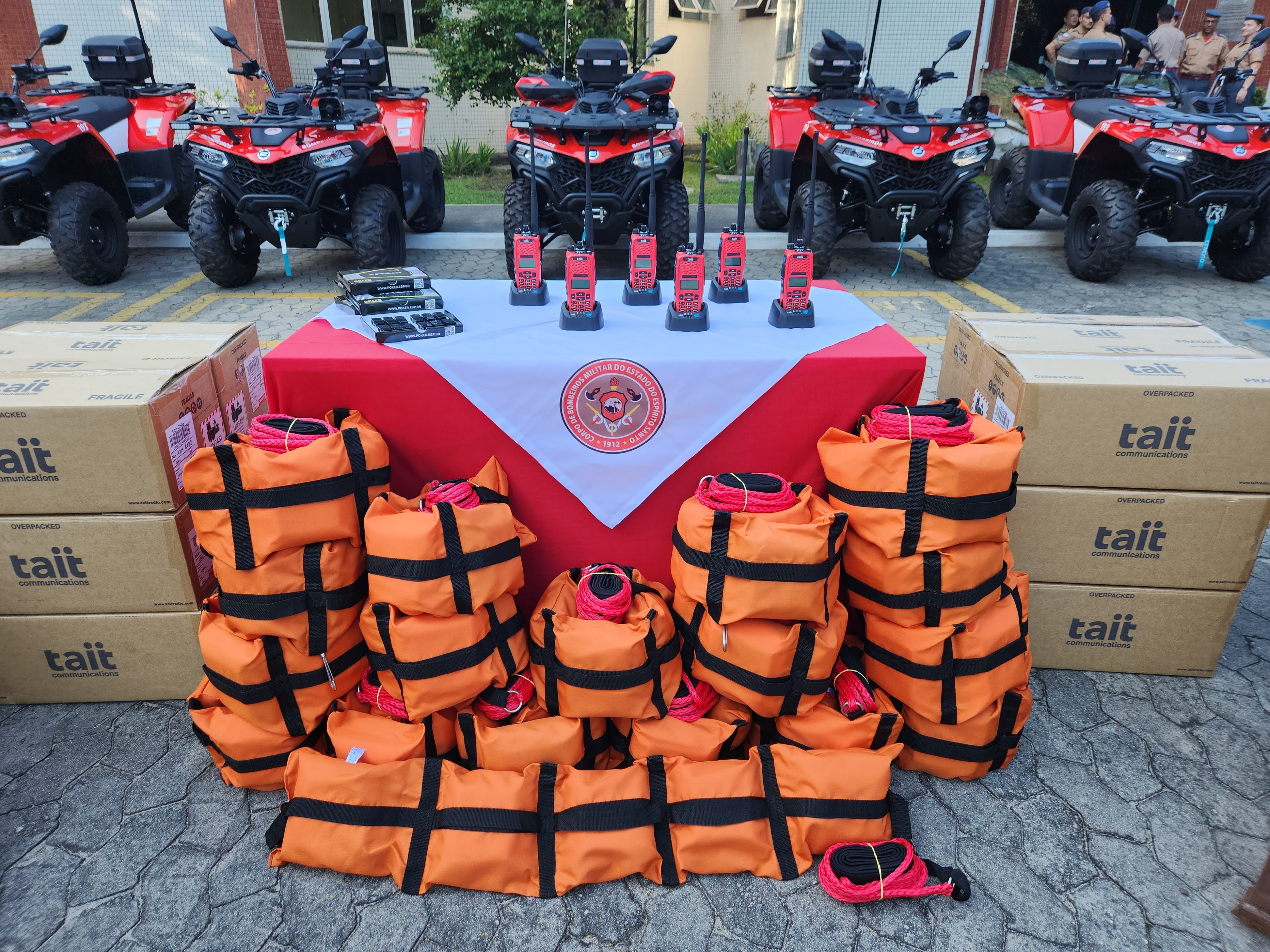Foram entregues sete quadriciclos, duas motos aquáticas, reboques para os dois tipos de veículos, 848 apitos, 178 radiocomunicadores e 662 flutuadores. Os equipamentos vão contribuir para a capacidade de resposta dos militares em ocorrências nas praias capixabas e serão usados nos municípios de Conceição da Barra, São Mateus, Aracruz, Fundão, Serra, Vitória, Vila Velha, Guarapari, Anchieta, Piúma, Itapemirim, Marataízes e Presidente Kennedy.
