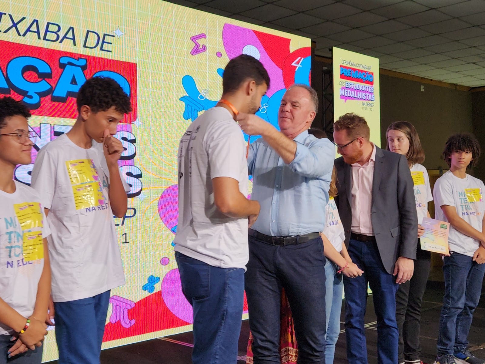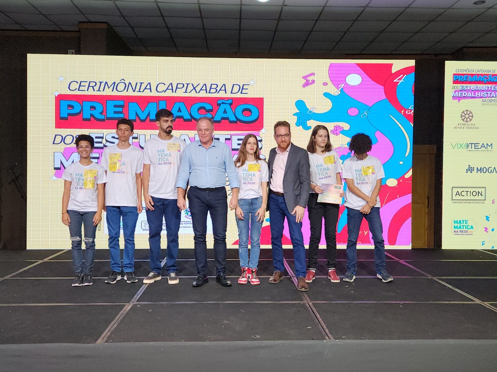O Governo do Estado, por meio da Secretaria da Educação (Sedu), promoveu, nessa quarta-feira (15), uma cerimônia de premiação dos alunos capixabas que participaram da Olimpíada Brasileira de Matemática das Escolas Públicas (OBMEP) 2019/2021. A solenidade aconteceu no Centro de Convenções de Vitória, com a presença do governador Renato Casagrande. Foram premiados 474 estudantes capixabas das redes estadual, municipal, federal e privada. Apenas da Rede Estadual foram premiados 179 alunos.