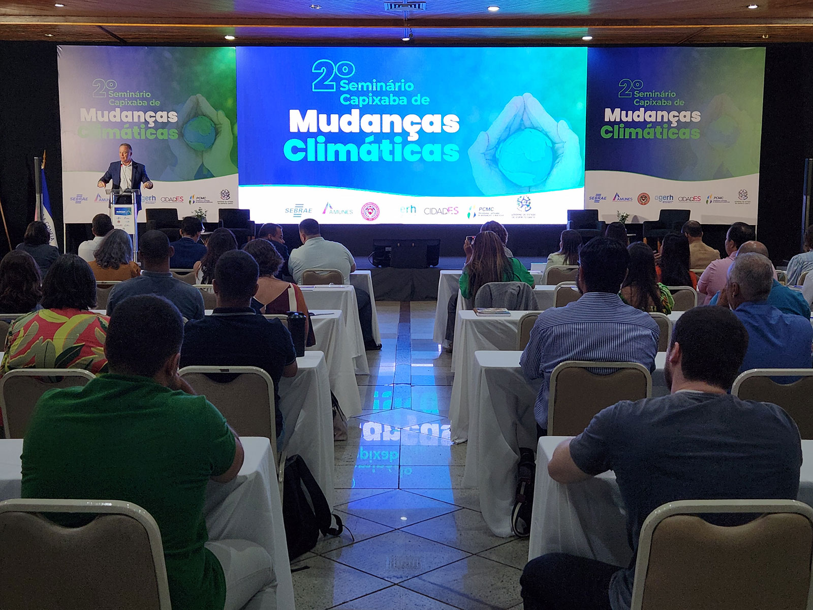 Cerca de 400 gestores e técnicos das prefeituras capixabas participaram, nesta quinta-feira (16), em Vitória, do 2º Seminário Capixaba de Mudanças Climáticas. O evento teve como objetivo a qualificação das equipes para a elaboração de projetos e a execução de obras com recursos do Fundo Cidades 2023-2026 – Adaptação às Mudanças Climáticas. A iniciativa é promovida pelo Governo do Estado, por meio das Secretarias do Governo (SEG) e do Meio Ambiente e Recursos Hídricos (Seama).