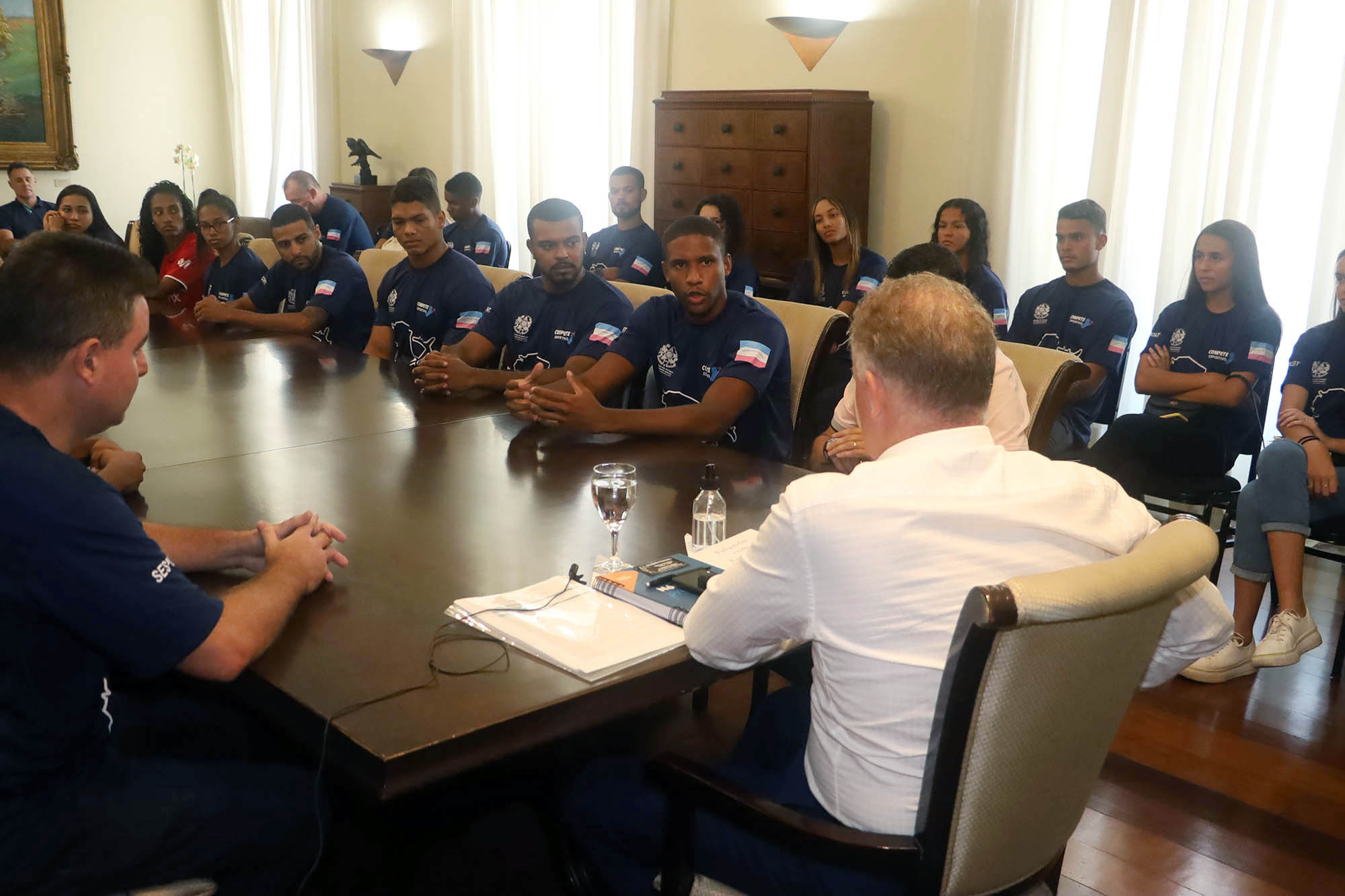 “Quero registrar a minha alegria por estar recebendo vocês. Quando a gente acompanha os grandes eventos, percebemos quais são os países que ganham mais medalhas. Na maioria das vezes, aqueles que mais ganham têm os países mais desenvolvidos. Queremos que o esporte seja um sinal do nosso desenvolvimento. Por isso, temos uma política forte nessa área com programas de fomento aos atletas e também com melhorias na infraestrutura esportiva”, comentou o governador.