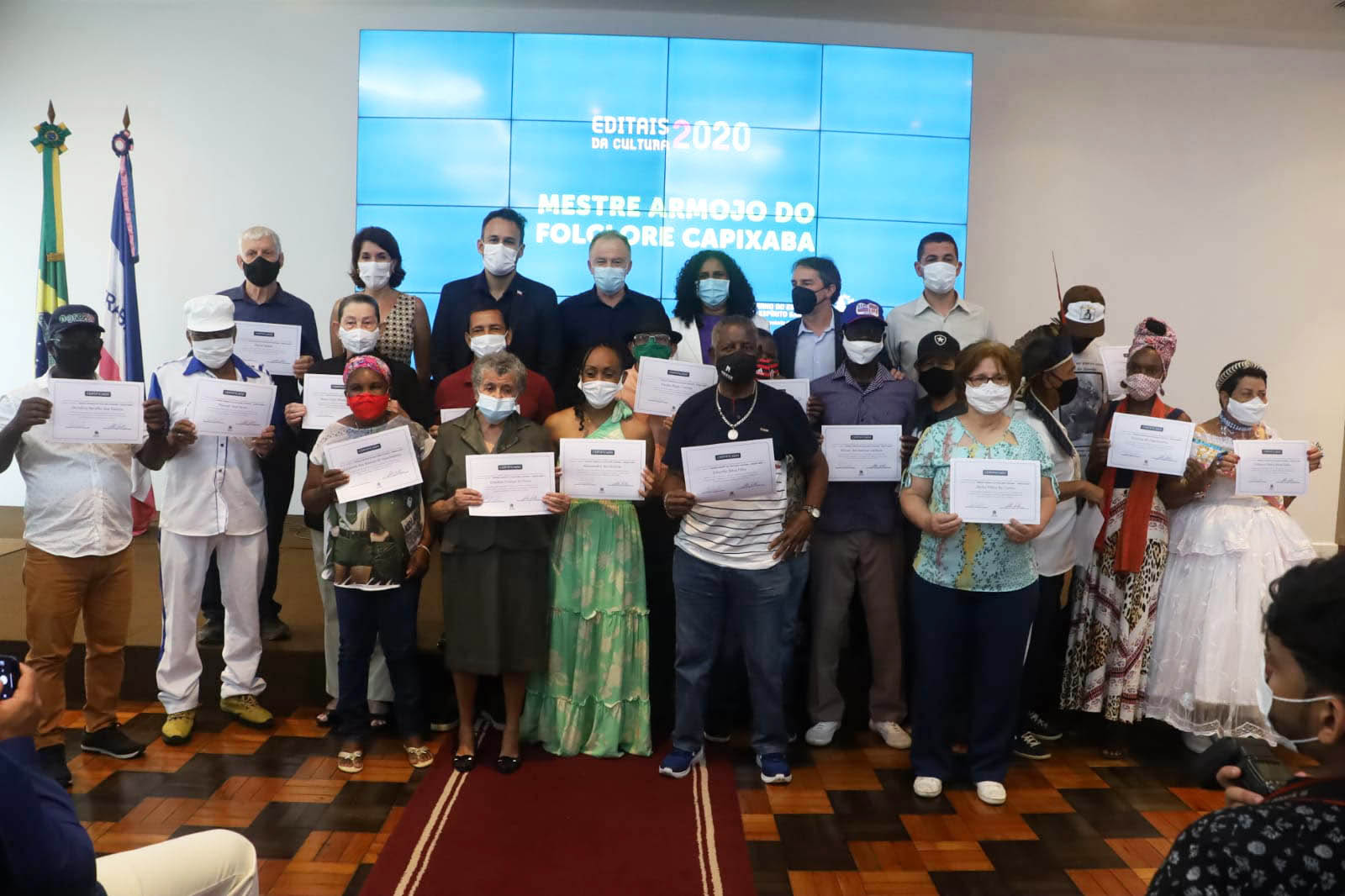 A premiação “Mestre Armojo do Folclore Capixaba” é resultante do Edital 013/2020 – Mestres e Grupos da Cultura Popular e tem como objetivo reverenciar a atuação de mestres e grupos, que auxiliam no fortalecimento e divulgação dos saberes e fazeres tradicionais. Na ocasião, a Secult concedeu aos 20 mestres o título e o certificado de “Mestres das Culturas Populares do Estado do Espírito Santo” e/ou de “Reconhecimento pela Manutenção das Culturas Populares e Tradicionais do Estado do Espírito Santo”.