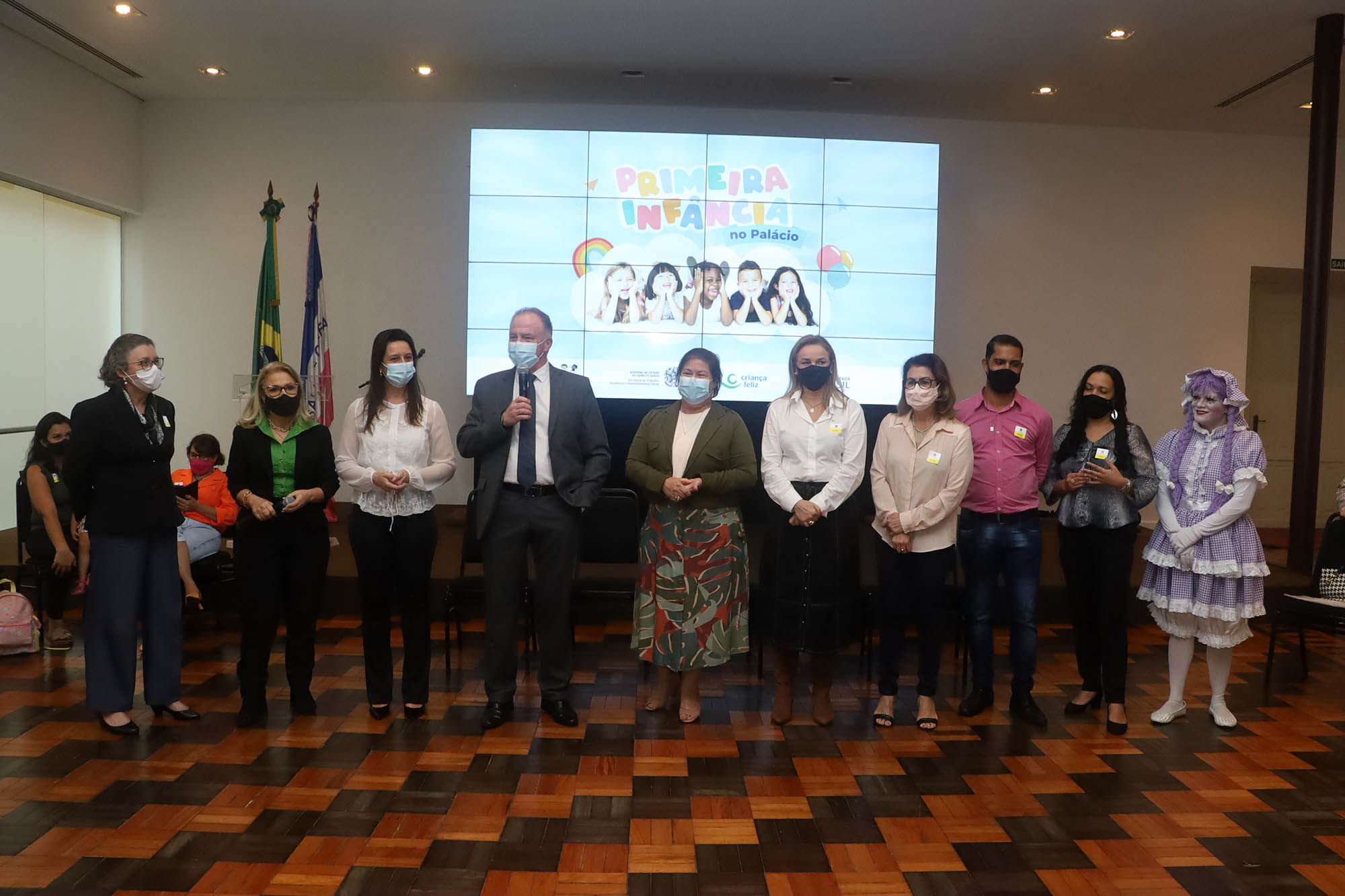 O encontro no Palácio Anchieta contou com a participação de comitivas dos 24 municípios adesos ao Programa Criança Feliz. Dentre os representantes municipais dos serviços de atendimento às crianças e familiares, estavam presentes alguns pequenos cidadãos atendidos pelo programa, que se divertiram com a programação pensada especialmente para eles.