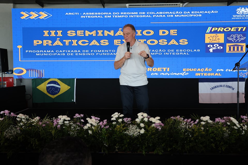O Governo do Estado, por meio da Secretaria da Educação (Sedu) promoveu, nesta quarta-feira (17), o III Seminário de Práticas Exitosas do Programa Capixaba de Fomento à Implementação de Escolas Municipais de Ensino Fundamental em Tempo Integral (PROETI). O evento, realizado no Clube Ítalo Brasileiro, em Vitória, contou com a presença do governador do Estado, Renato Casagrande, e do secretário de Estado da Educação, Vitor de Ângelo.