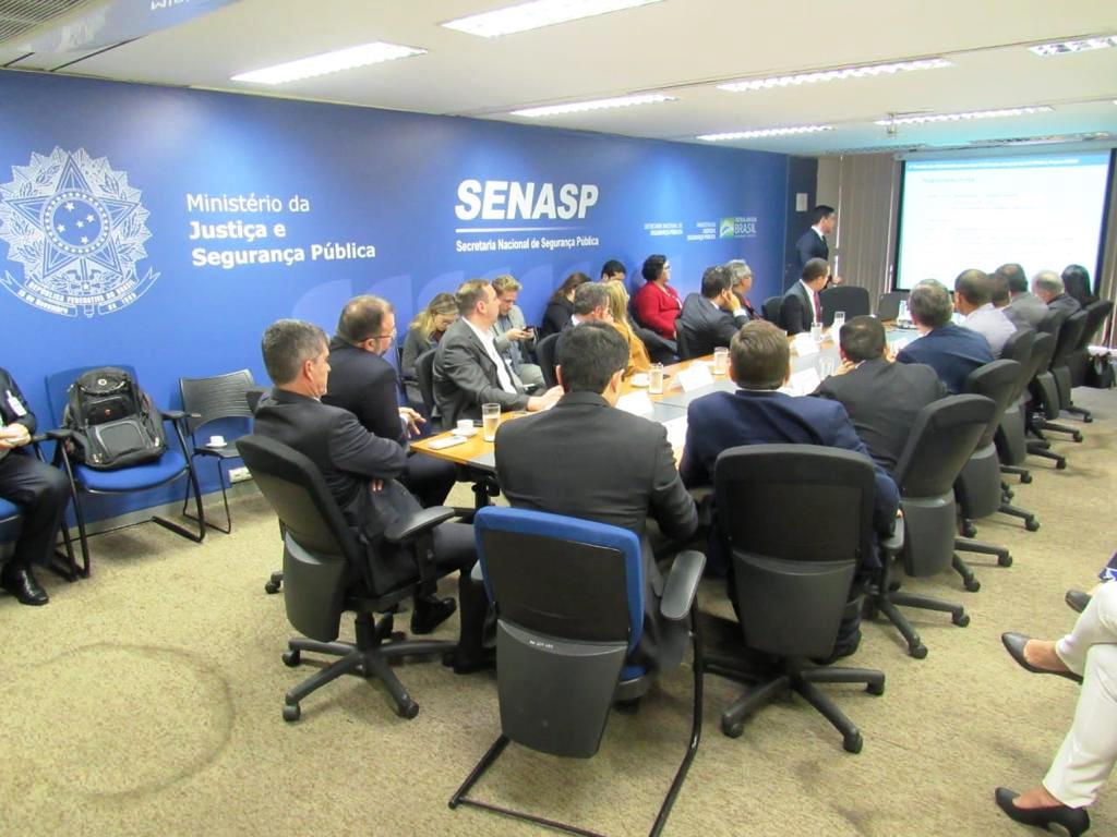 A reunião foi aberta pelo secretário nacional de Segurança Pública, Guilherme Theophilo, e contou com participações de representantes de cinco Estados – Espírito Santo, Pará, Goiás, Paraná e Pernambuco – e de cinco municípios – Cariacica, Ananindeua-PA, Goiânia-GO, Ribeirão do Pinhal-PR e Paulista-PE.