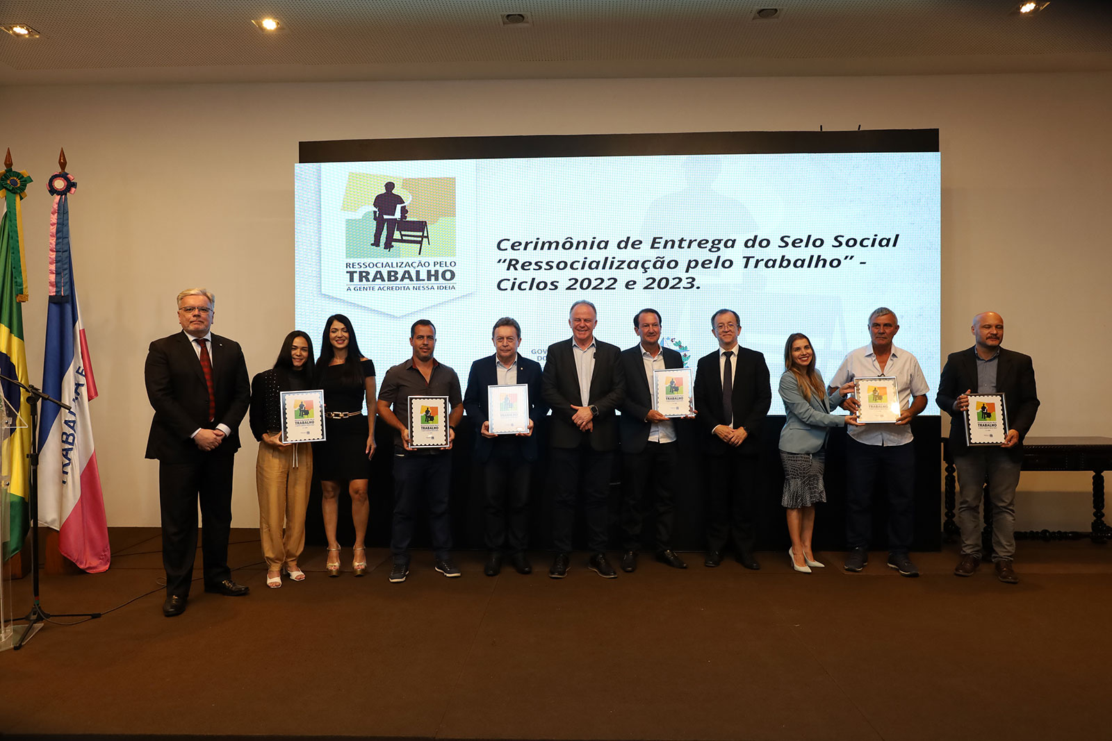 A Banda da Sejus, composta por servidores penitenciários, abrilhantou a solenidade de entrega do Selo Social entoando um repertório com Música Popular Brasileira (MPB). A Empresa Domart Alimentos Ltda, a “Oi Frango”, recebeu o Selo Social Ressocialização pelo Trabalho. A empresa completou oito anos de parceria com a Secretaria da Justiça. Nesse período, mais de 400 detentos do regime semiaberto receberam da instituição uma oportunidade de trabalho.