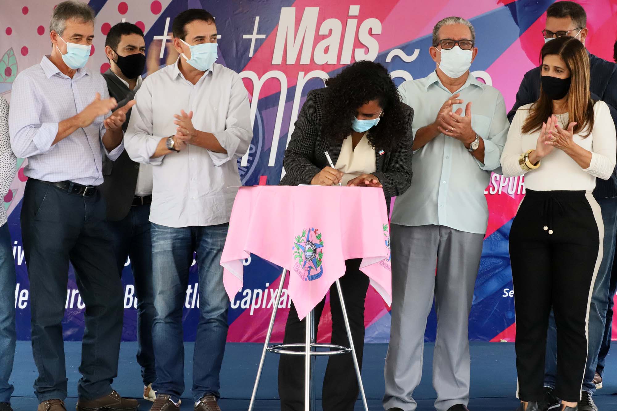 Mais cedo, Jacqueline Moraes esteve em Mucurici para a assinatura da Ordem de Serviço para a construção de um espaço esportivo coberto no bairro Alto Bonito. O equipamento ocupará um espaço de 30,00 x 18,00 metros quadrados e poderá ser utilizado para as práticas das modalidades basquete, futsal e vôlei. O investimento realizado pelo Governo do Estado, por meio da Sesport e DER-ES, será de cerca de R$ 600 mil.