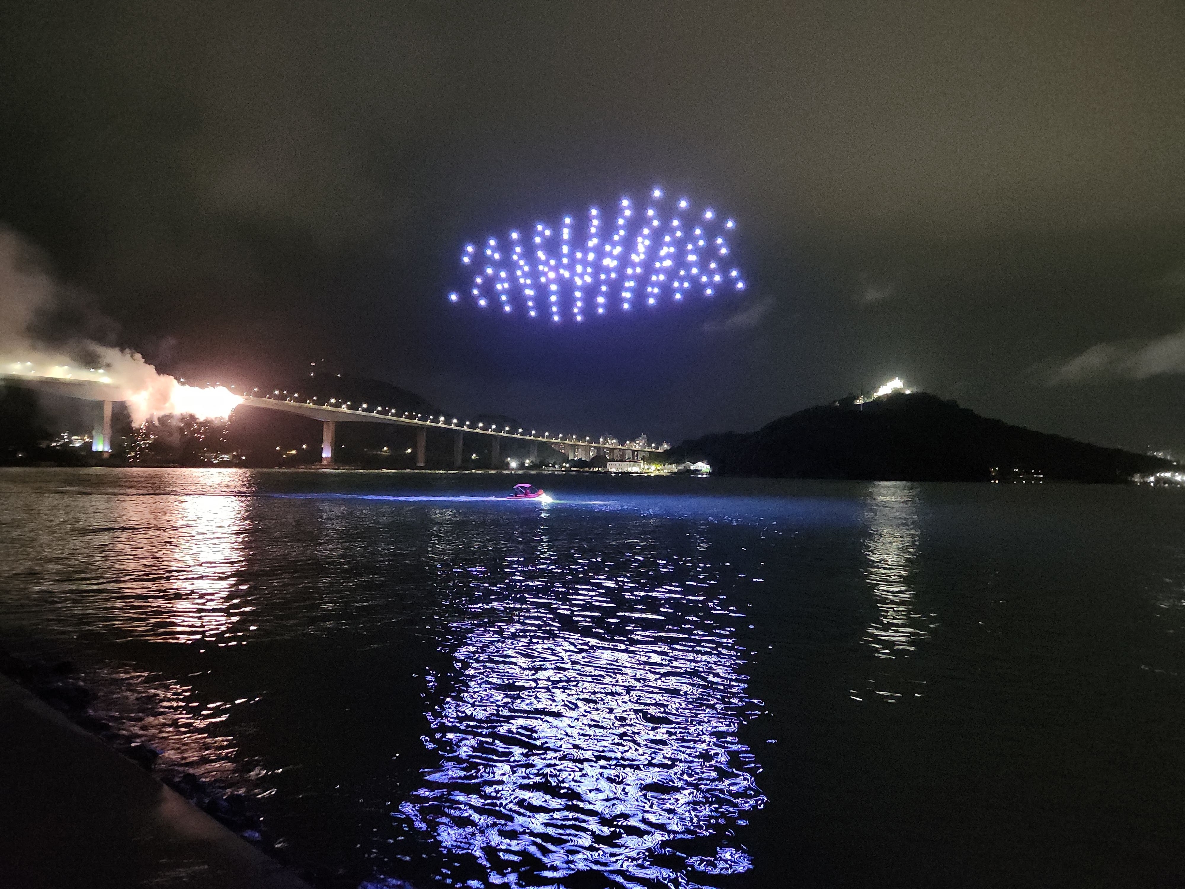 O ponto alto da noite foi a apresentação coreografada de 150 drones que pintaram o céu com imagens alusivas ao Espírito Santo, como a bandeira estadual, o Convento da Penha, a Terceira Ponte, as barcas do Aquaviário, o Transcol e uma bicicleta, novo modal incorporado ao trânsito na via. A mensagem de valorização à vida foi transmitida de maneira emocionante e a apresentação encerrou com a frase presente na bandeira do estado: “Trabalha e Confia”.