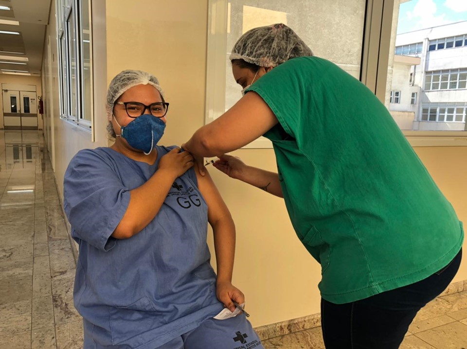 Em relação à imunização dos profissionais da saúde, os critérios utilizados, segundo a Resolução CIB N° 007/2021, leva-se em consideração: os profissionais vacinadores; os das Instituições de Longa Permanência para Idosos; os trabalhadores de Unidades de Terapia Intensiva Covid-19, dos hospitais referências; trabalhadores da Urgência e Emergência; enfermaria dos hospitais Covid-19; e do Serviço de Atendimento Móvel de Urgência (SAMU); profissionais da sala vermelha de Unidades de Pronto Atendimentos (UPAs e PAs); e profissionais dos Centros de Referência para a Covid-19, na Atenção Básica.