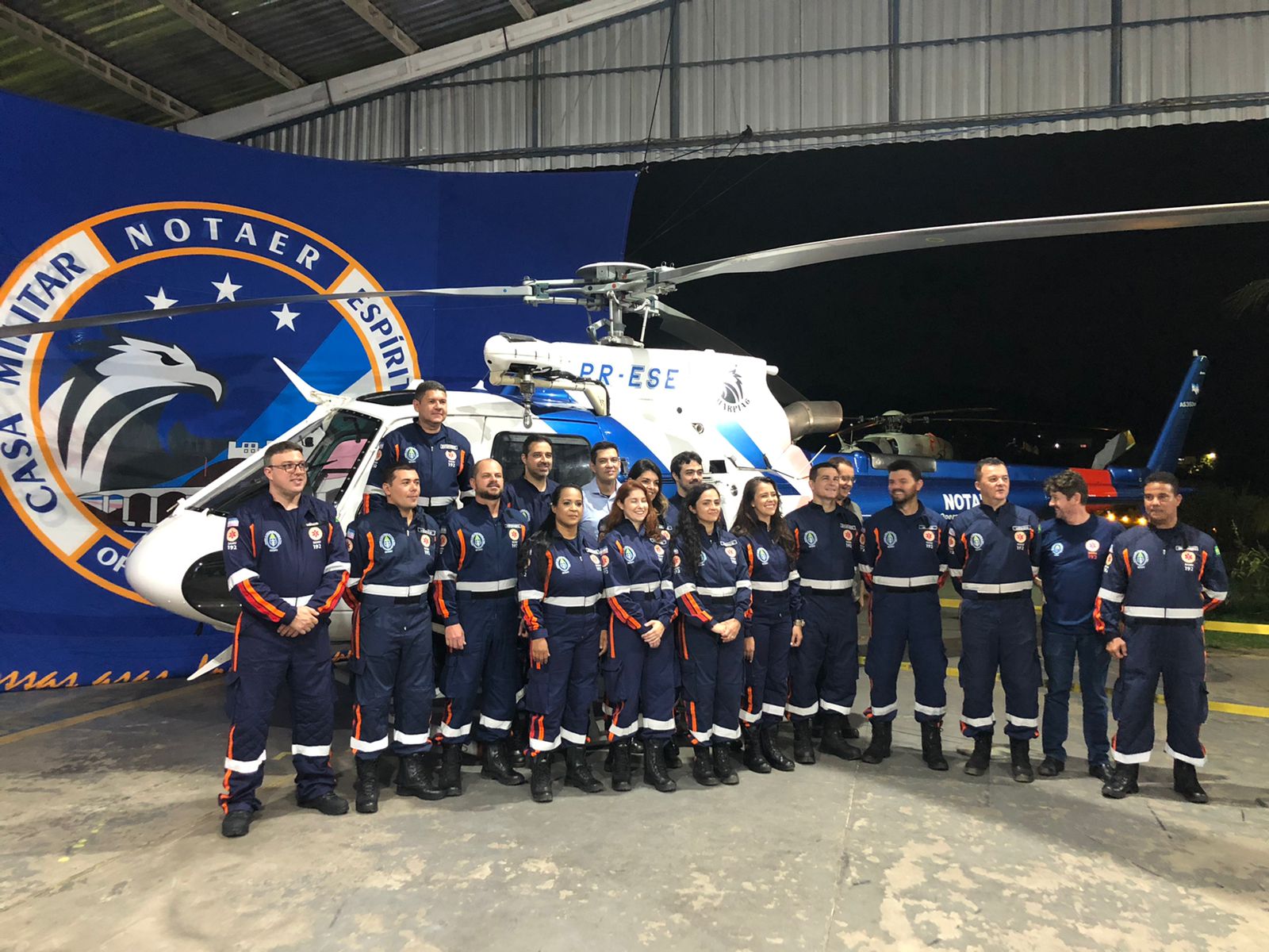 Na noite desta quinta-feira (07), no hangar do Núcleo de Operações e Transporte Aéreo (NOTAER) da Secretaria da Casa Militar, foi realizada a solenidade alusiva ao encerramento do 1º Curso de Operador de Suporte Médico. A formação, que é destinada aos enfermeiros e médicos do SAMU 192 que participam das operações de salvamento e resgate aéreos da unidade aérea pública capixaba, destinou-se a capacitar e habilitar 19 profissionais para que possam desenvolver ações específicas a bordo das aeronaves do NOTAER em voos aeromédicos.