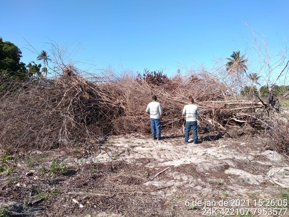 Já o desmatamento se deu em uma fazenda contígua ao Parque. No local foi aberta uma estrada, passando por áreas de floresta de restinga e áreas de restinga em regeneração. “Parte da ação ilegal se deu dentro dos limites do PEI e atingiu Áreas de Preservação Permanente (APP) do rio Itaúnas e do córrego Providência. A supressão da vegetação se deu em uma área de aproximadamente sete hectares”, explicou o agente de Desenvolvimento Ambiental do PEI, Gustavo Rosa.