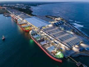 A capacidade total de Portocel é para 7,5 milhões de toneladas por ano, ou seja, o ano fechou com o porto girando em 88,6% de sua capacidade máxima.