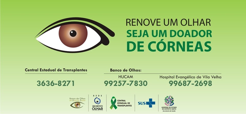 Com a finalidade de evidenciar a importância da doação de córneas, a Secretaria da Saúde (Sesa) por meio da Central Estadual de Transplantes do Espírito Santo (CET-ES), realizará ações para divulgação da campanha “Renove um olhar. Seja um doador de córnea”, nos terminais do sistema transcol de Itaparica, Jardim América e Laranjeiras. As ações têm início nesta terça-feira (24) e seguem até a quinta-feira (26).