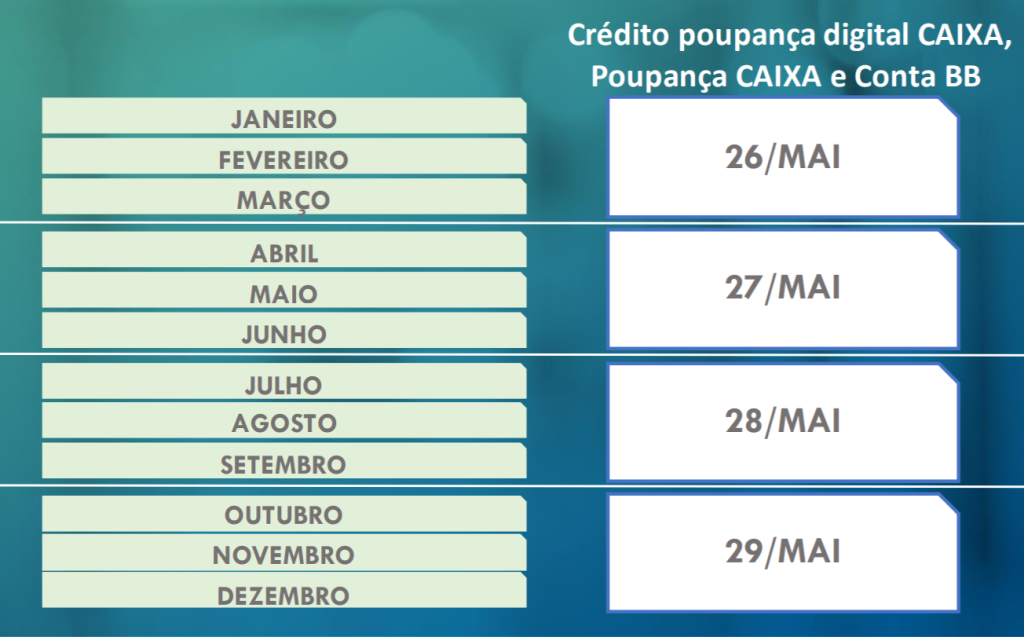 Já no caso da terceira parcela recebem os créditos no dia 26 de maio trabalhadores incluídos no CadÚnico e cadastrados no app que fazem aniversário em janeiro, fevereiro e março; no dia 27 os que fazem aniversário em abril, maio e junho; no dia 28 os que completam mais um ano de vida nos meses de julho, agosto e setembro; e no dia 29 os que fazem aniversário nos meses de outubro, novembro e dezembro.