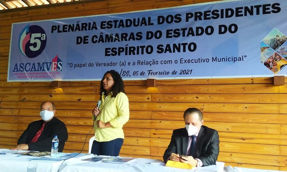 A vice-governadora do Estado, Jacqueline Moraes, participou, na sexta-feira (5), da Plenária Estadual dos Presidentes de Câmaras do Espírito Santo, realizada em Balneário Carapebus, na Serra. Jacqueline Moraes representou o governador Renato Casagrande na posse da nova diretoria da Associação das Câmaras Municipais e de Vereadores do Espírito Santo (Ascamves) para o biênio 2021-2022.